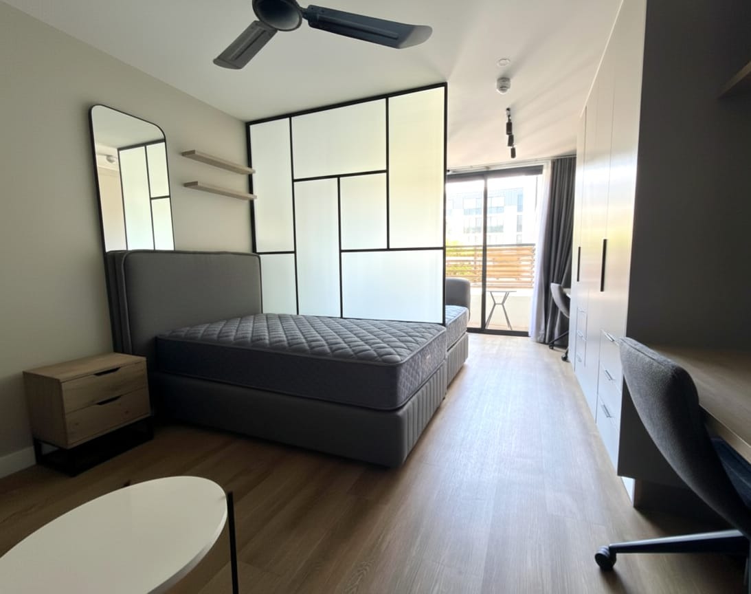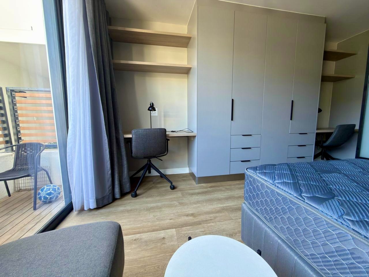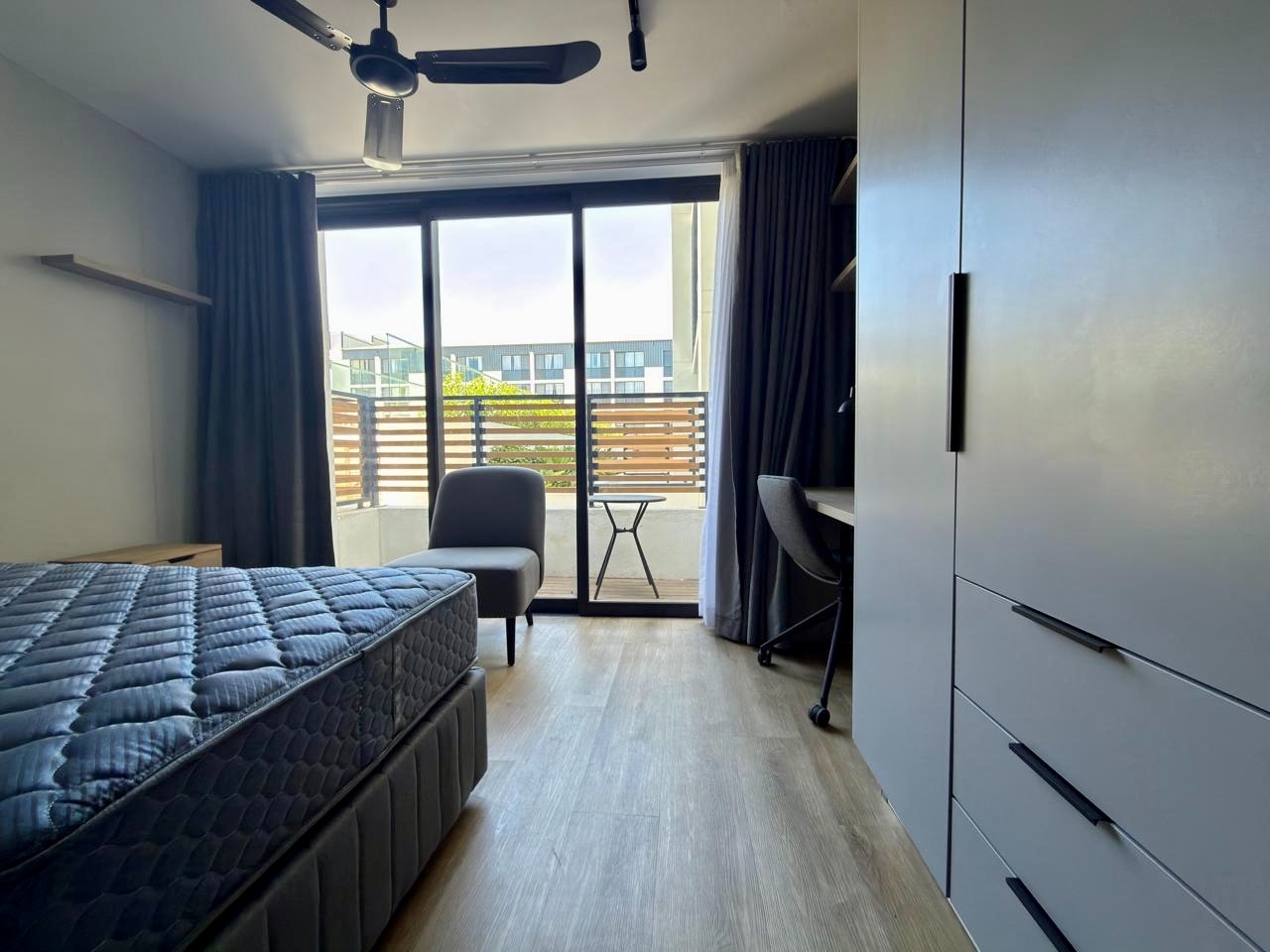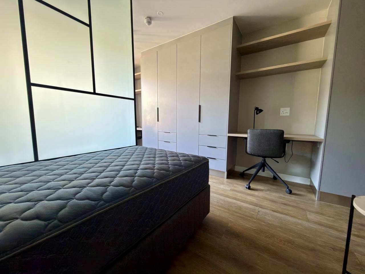 Discover modern student living in this well-appointed open plan 2-bedroom, 1-bathroom rental unit located in vibrant Stellenbosch Central. This contemporary space is designed for efficiency and comfort. The building, 'THE ONE', presents a stylish facade with modern architecture, featuring clean lines and a welcoming glass-fronted entrance, setting the tone for sophisticated urban living. Inside, the unit boasts a thoughtfully designed layout, maximizing every square meter. Each bedroom space is compact yet functional, with integrated storage solutions and dedicated study areas, some featuring built-in desks and shelving.