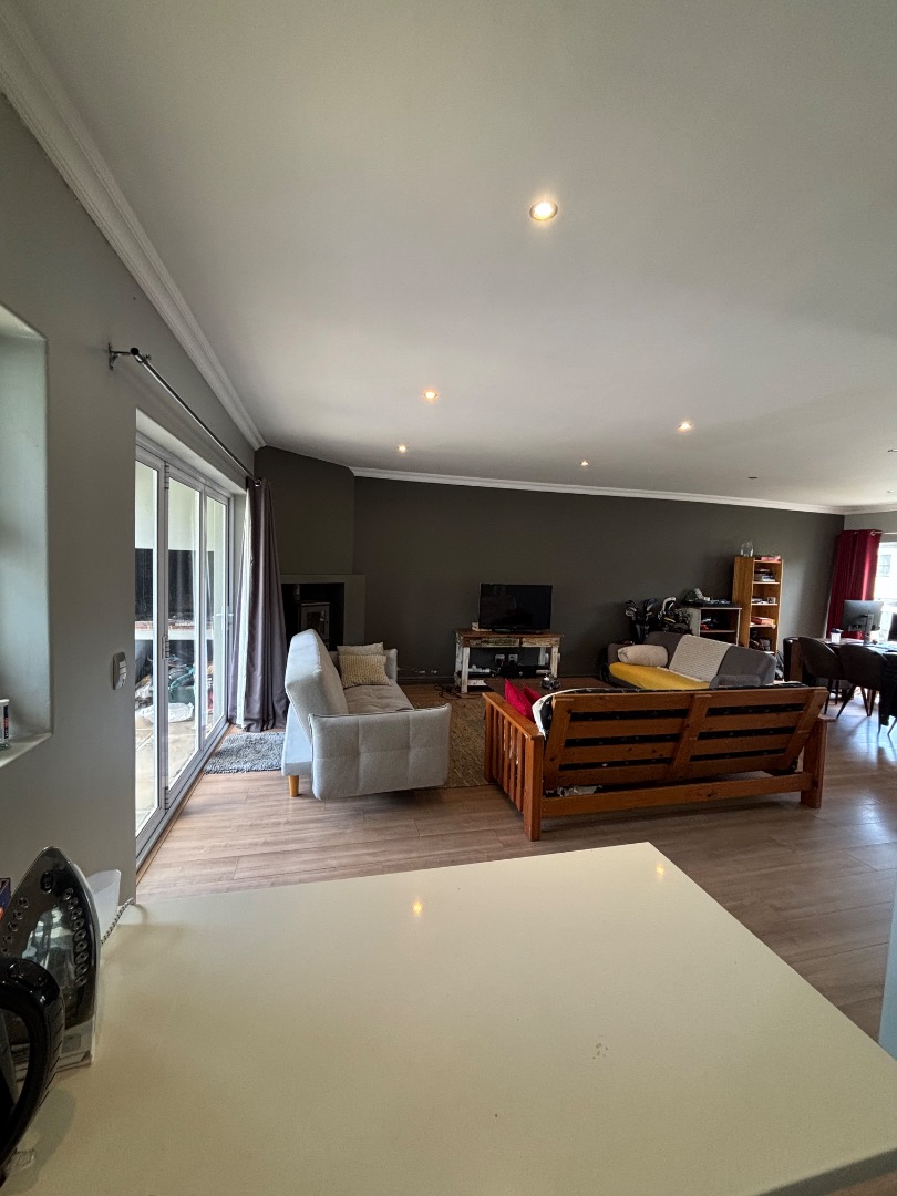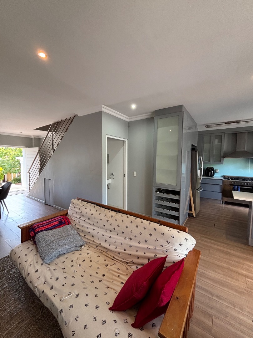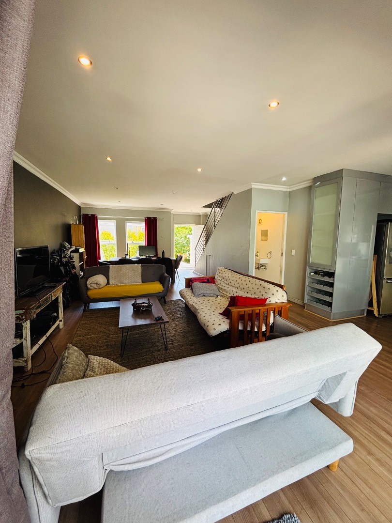 *Mandate* Discover modern living in this inviting 3-bedroom, 3.5-bathroom townhouse, ideally situated within the secure Welgevonden Estate in Stellenbosch. Spanning 110 sqm, this residence offers a contemporary open-plan layout designed for comfort and functionality. The main living areas feature attractive wood-look flooring, high ceilings with elegant crown molding, and recessed lighting, creating a bright and welcoming atmosphere. A cozy corner fireplace adds warmth, while large sliding glass doors seamlessly connect the interior to the outdoor spaces. The property includes a dedicated lounge, a dining area, a well-appointed kitchen with a pantry, and a family TV room, providing ample space for relaxation and entertainment. Air conditioning ensures year-round comfort.